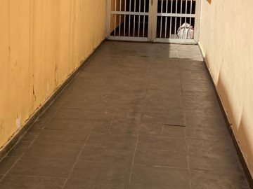 Quintal, churrasqueira e lavanderia com ampla área na parte superior traseira do sobrado. Garagem para 2 carros e moto.